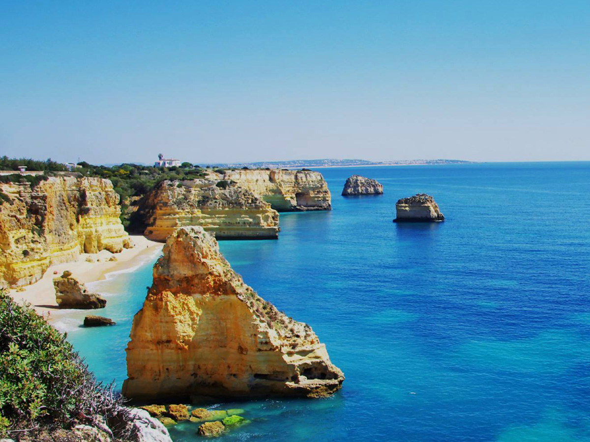 A costa do Algarve, situada na região sul de Portugal, é famosa pela sua beleza natural, praias de areia dourada, águas cristalinas e formações rochosas impressionantes.